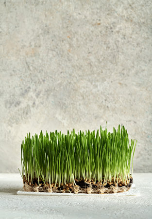 Sprouted wheat. Fresh green grass for the cat. Vitamins for animals