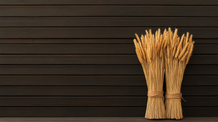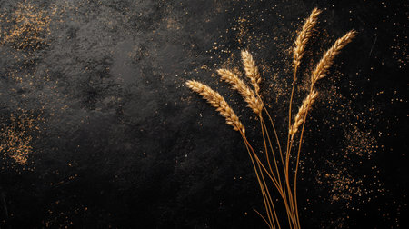 AI Generated. Golden Wheat Stalks on Dark Background for Agricultural and Natural Food Concepts