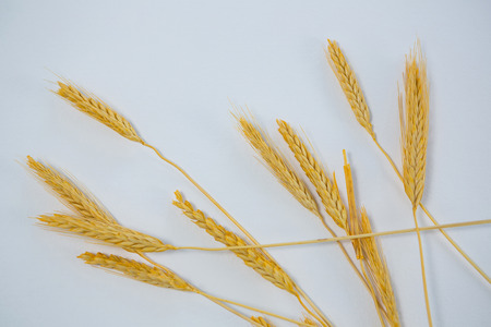 wheat spikes on white marble background