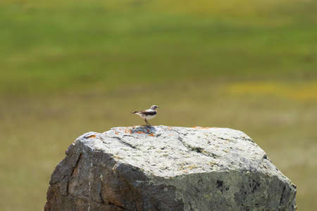 Northern Wheatear, Oenanthe oenanthe a bird sits on a rock.