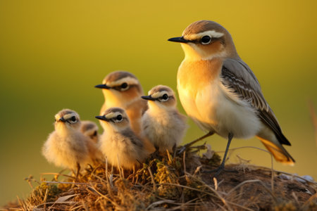 Capturing Precious Moments: A Glimpse of Isabelline Wheatear - Oenanthe isabellina Male and Chicks Embarking on their Nest Departure in Romania