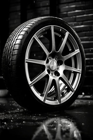 Alloy wheel black rubber wet tire speed AI generated illustration