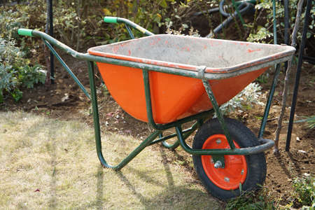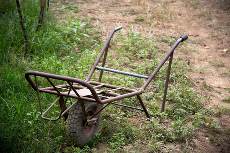 Dusty wheel barrow at the backyard