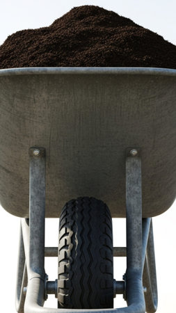 Garden-wheelbarrow filled with soil on a farm.