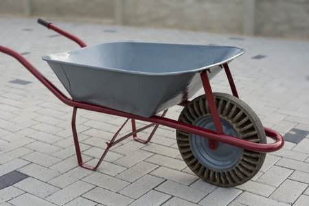 metal wheelbarrow cart on construction site