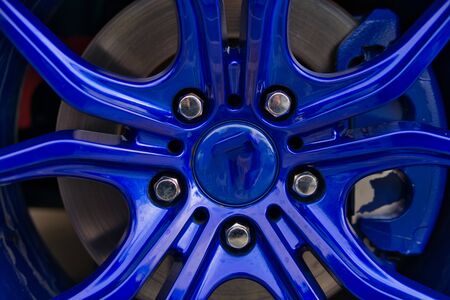 Alloy wheels, rims or alloy wheels, high performance car accessories. blurred light background.