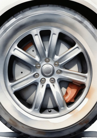 A close-up of a cars alloy wheel with intricate spoke design, highlighting craftsmanship and performance, set against a blurred background to emphasize