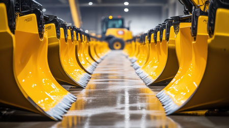 bulldozer in a large industrial building, close up