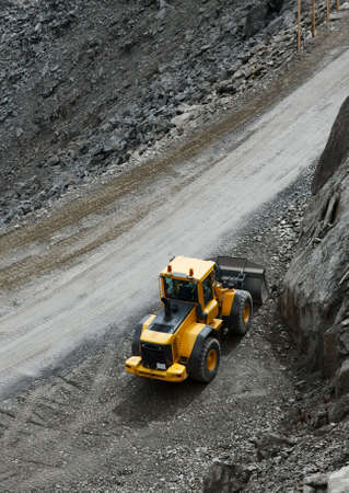 Construction machine in a dark rocky area