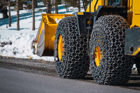 Snow chain on road maintenance machines
