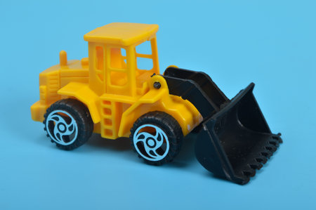 Yellow Toy Loader on Black Textured Background. Heavy machinery concept.