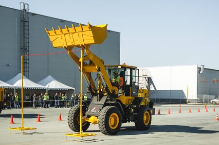 Bednary near Poznan, Poland - September 20, 2019: Agroshow in Poland. Schmidt brand machine, wheel loader.