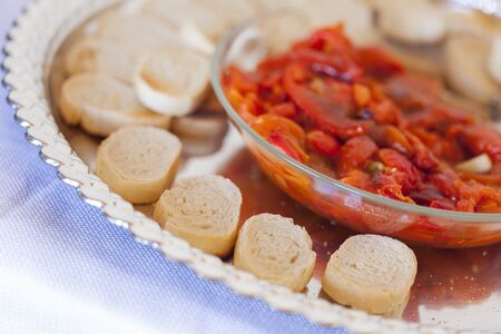 Sourdough Slices and Peppers on Serving Tray.