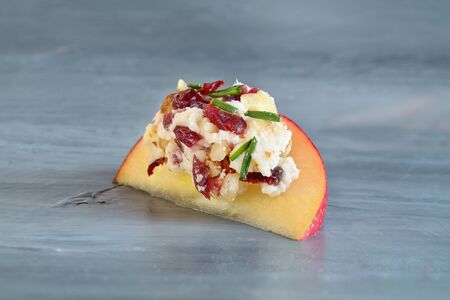 Cranberry spread made with goat cheese, dried cranberries, walnuts, and chives.