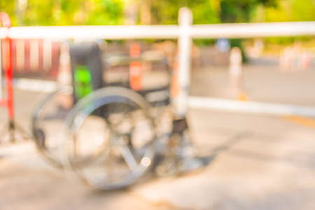 image of Closeup empty wheelchair outdoor on the road for background usage.