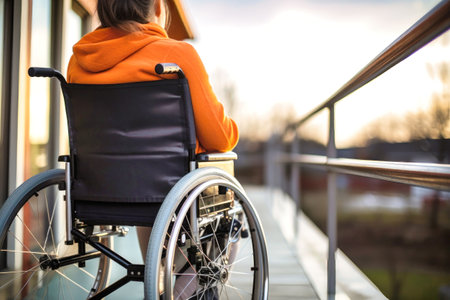 A person in wheelchair navigating modern urban environment, showcasing daily life and accessibility challenges