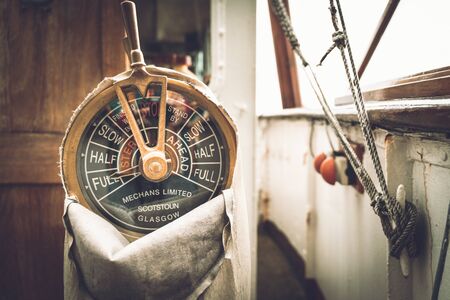 Vintage Brass Ship's Engine Order Speed Control Lever Telegraph Or Chadburn With Copy Space, Bristol, United Kingdom