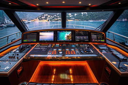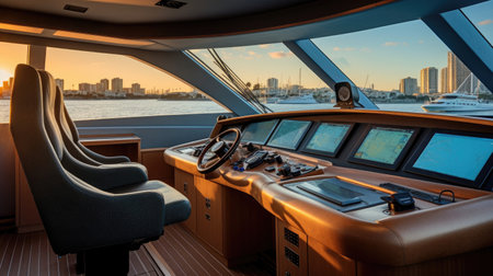 Private Yacht Bridge Navigation Panoramic Views High-End Finishes Cutting-Edge Technology