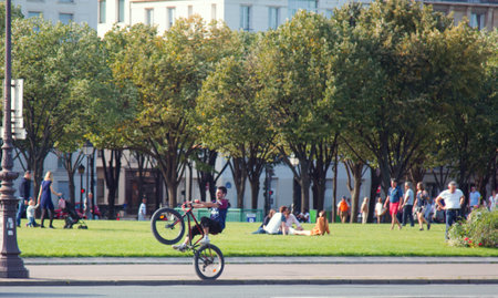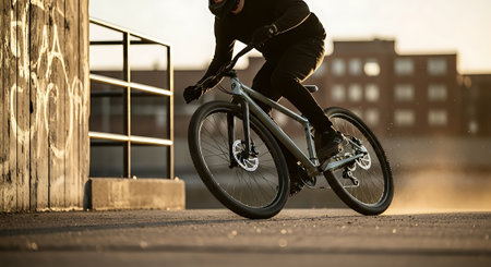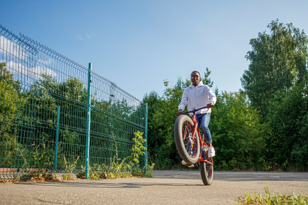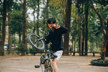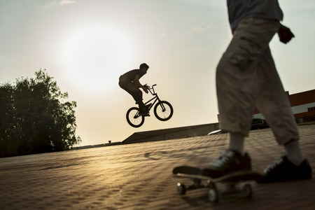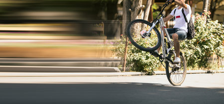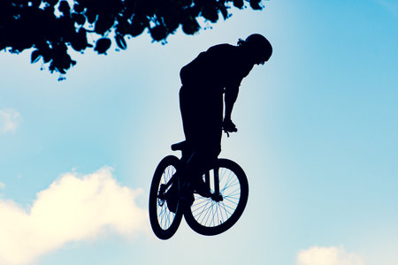 teenager jump on a bicycle outdoors