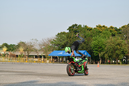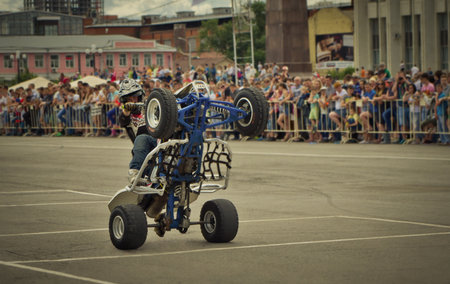Khabarovsk Russia - July 11, 2015 : a stunt rider on a sport bike ,on a stunt battle, July 11, 2015 in Khabarovsk Russia