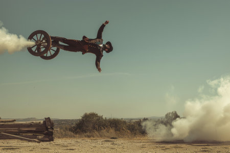 A cannon shooting a daring performer through the air AI generated
