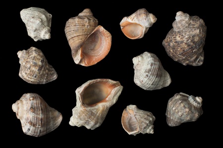 Set of sea Rapanas black isolated. Studio shot