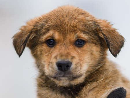 Lovely brown puppy dog portrait looking up with beautiful eyes