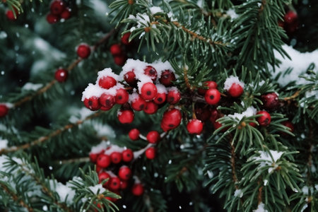 branch holiday red tree green celebration christmas decoration winter berry tree. Generative AI.