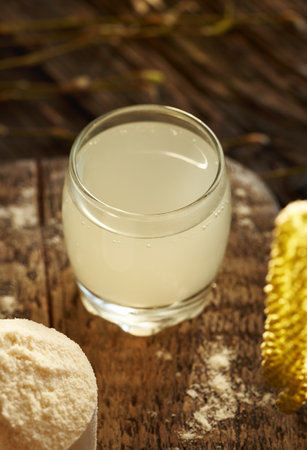 Fresh natural whey in a glass - protein rich healthy nutritional supplement
