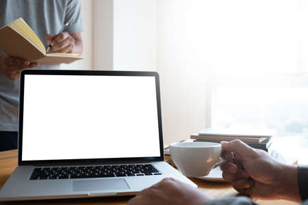 Business partners concept a young businessman talking to his colleague about a marketing plan of the new upcoming product.