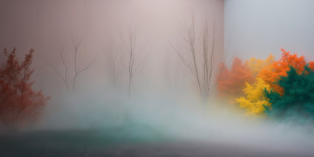 AI Generated. Fog interior misty pastel autumn silhouette colors over colorful