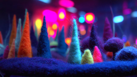 Colorful embroidered landscape with yarn trees .Generative AI