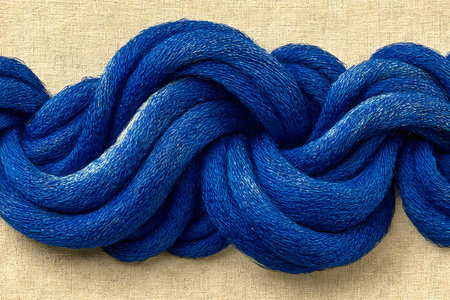 Vividly twisted blue yarn set against a textured beige background, showcasing intricate fiber details and rich color, ideal for textile designs, knitting projects, or craft inspiration. Generative AI