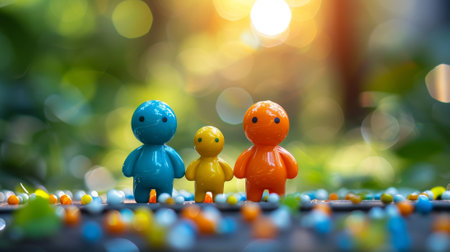 Miniature Family Enjoying Sunny Day in Park