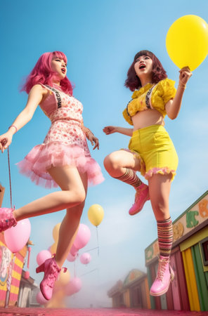 An AI generated illustration of two cheerful girls laughing in a park