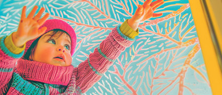 Babys curious touch on a random, frosty window, winters first caress