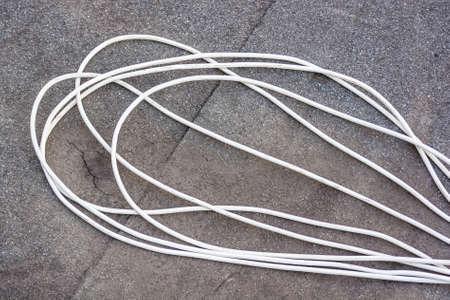 Closeup white electrical cable on ground