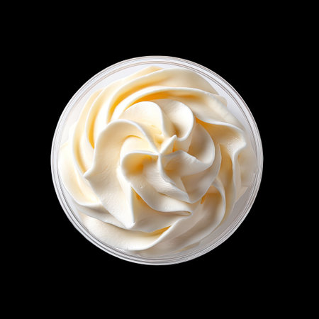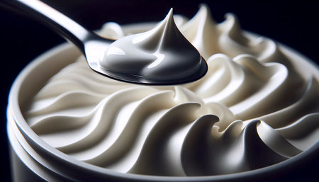 Thick cream with swirling texture showcases smoothness and richness in dairy product