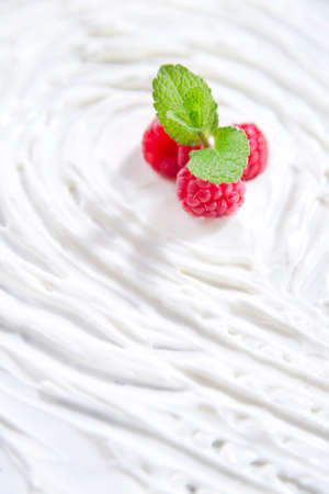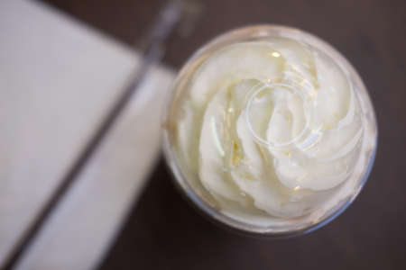 White meringue cream texture. Whipped white egg texture. Latte foam. Whipping cream.