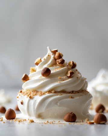 AI Generated. Whipped Cream Dessert with Hazelnuts - A Delicious Culinary Image