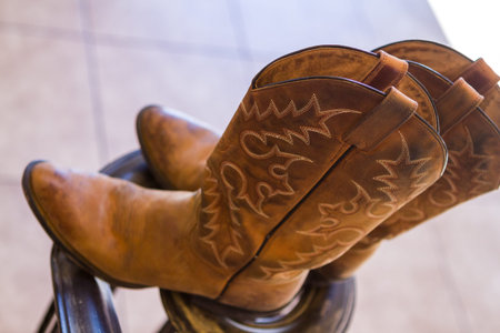 Cowboy boots on a wooden floor. Cowboy boots on a wooden floor.