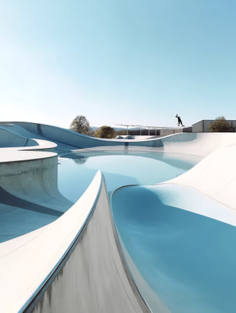 Beautiful poolside with sleek loungers submerged in clear water, perfect for lounging on a warm summer day.