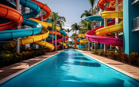 Tampa, Florida, U.S.A - November 4, 2021 - The colorful water rides at Adventure Island Water Park