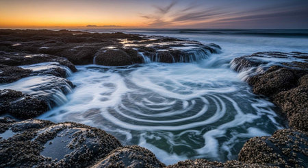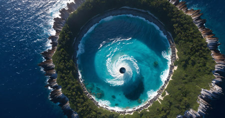 A mesmerizing ocean swirl demonstrates the force of nature as water spirals into a vortex.