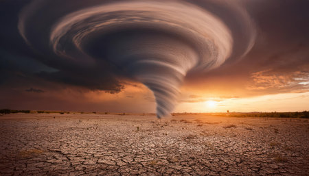 AI Generated. Dramatic Tornado Under Stormy Sky at Sunset