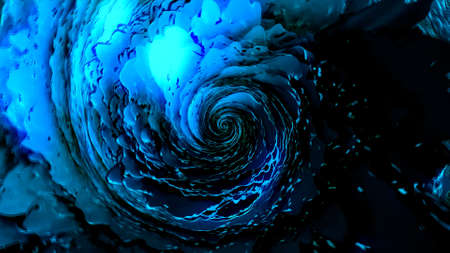 Abstract blue 3D spiral shaped tornado with unusual transforming texture, seamless loop. Motion. Top view of water like swirl in endless spinning motion.