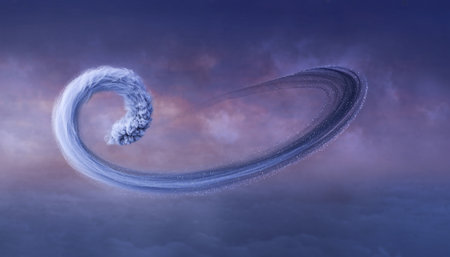 An enchanting swirling vortex of soft, luminous wisps creates a captivating visual experience, drawing the viewer into its depths. The gentle interplay of light and shadow evokes a sense of mystery and wonder, inviting exploration of the unknown.