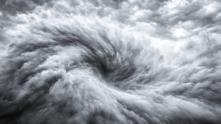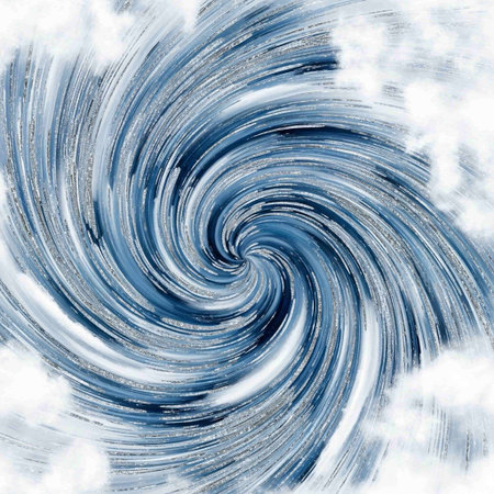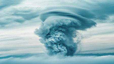 A mesmerizing view of a swirling cloud formation captures the raw power of nature. The ethereal blue tones blend with dramatic shapes, creating a stunning atmospheric spectacle.