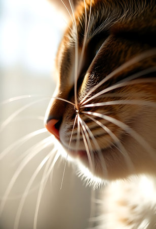 Close-up view of a cats fur texture with soft lighting. This captures the feeling of trust and a caring atmosphere in pet grooming.