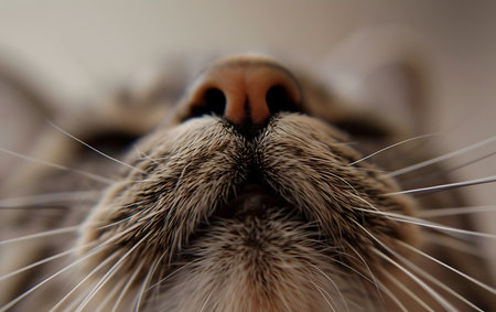 Close up of cat's nose and whiskers. Shallow depth of field.